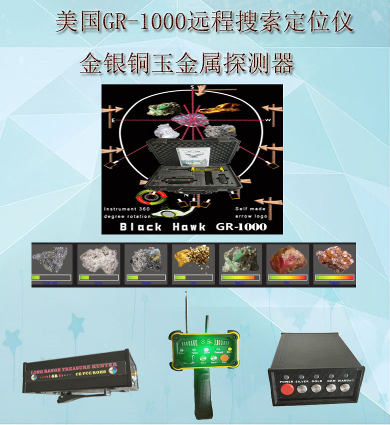 新款美國(guó)GR-1000地下大范圍遠(yuǎn)程金銀寶石自動(dòng)金屬探測(cè)器,具有大深度自動(dòng)雷達(dá)定位,具有重量輕攜帶方便,手提箱主機(jī),防水,抗摔,操作簡(jiǎn)單實(shí)用。所有調(diào)節(jié)都很直觀簡(jiǎn)單,直觀提供了不同金屬的不同信號(hào)。擁有比較強(qiáng)的金屬識(shí)別能力,可以選擇金屬模式金銀銅寶石玉器功能。